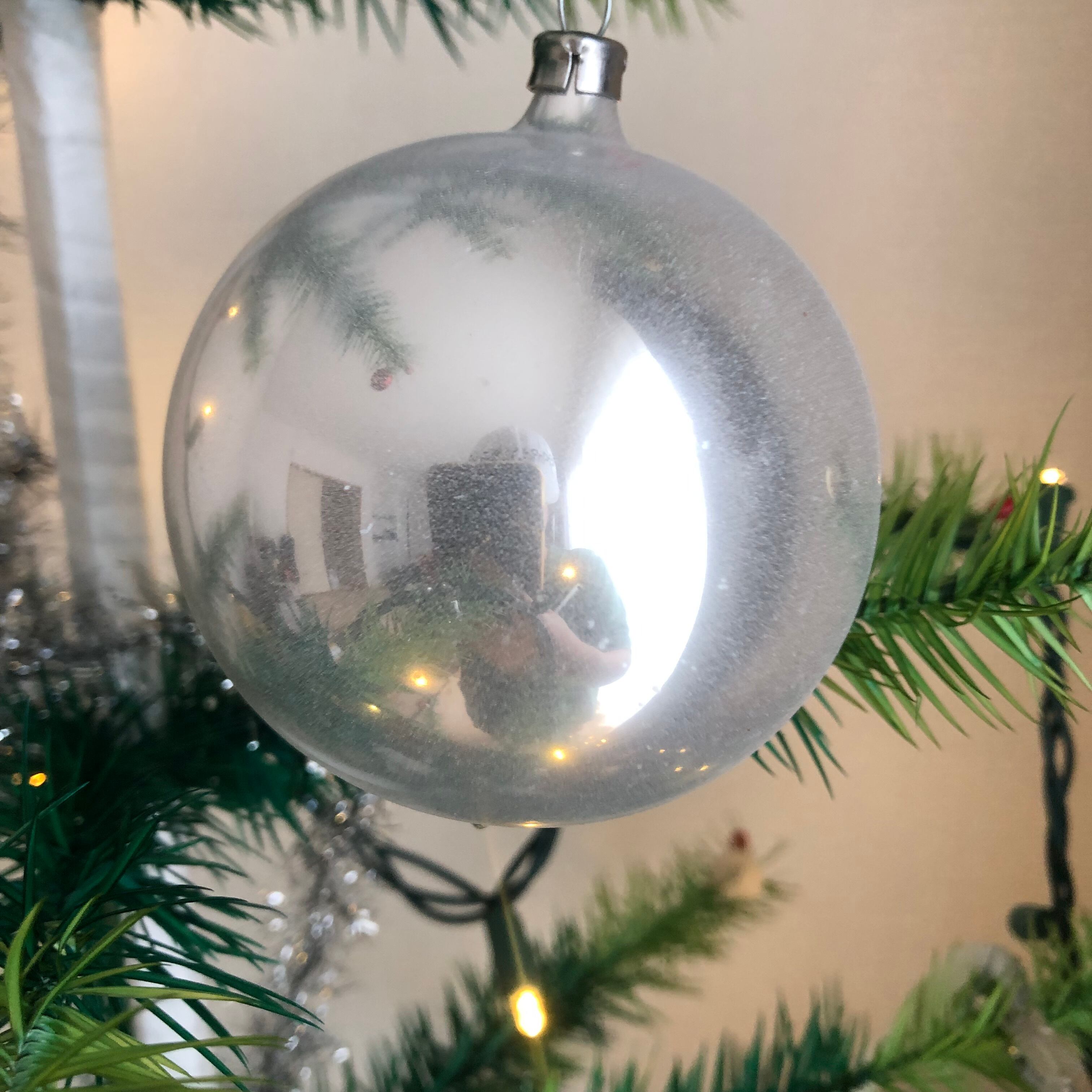 ヴィンテージ風に加工されたガラスオーナメントです。