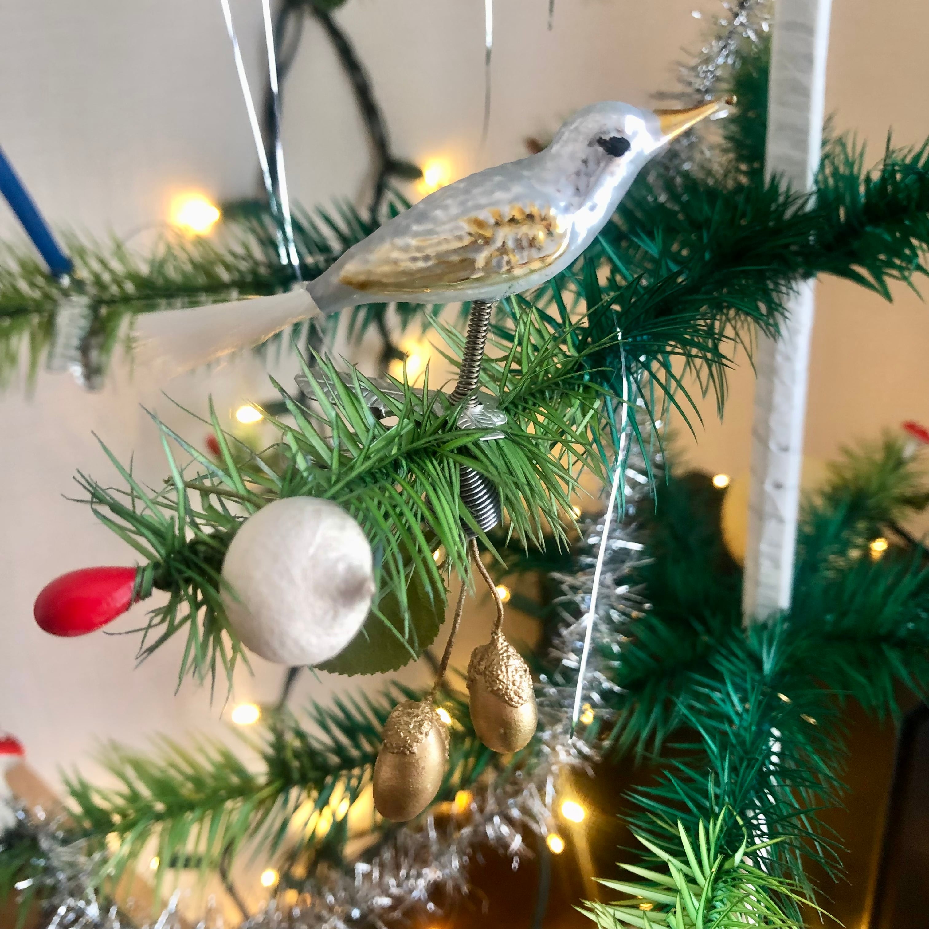 ドイツ製 どんぐり付きの鳥 ガラスオーナメント クリスマスオーナメント
