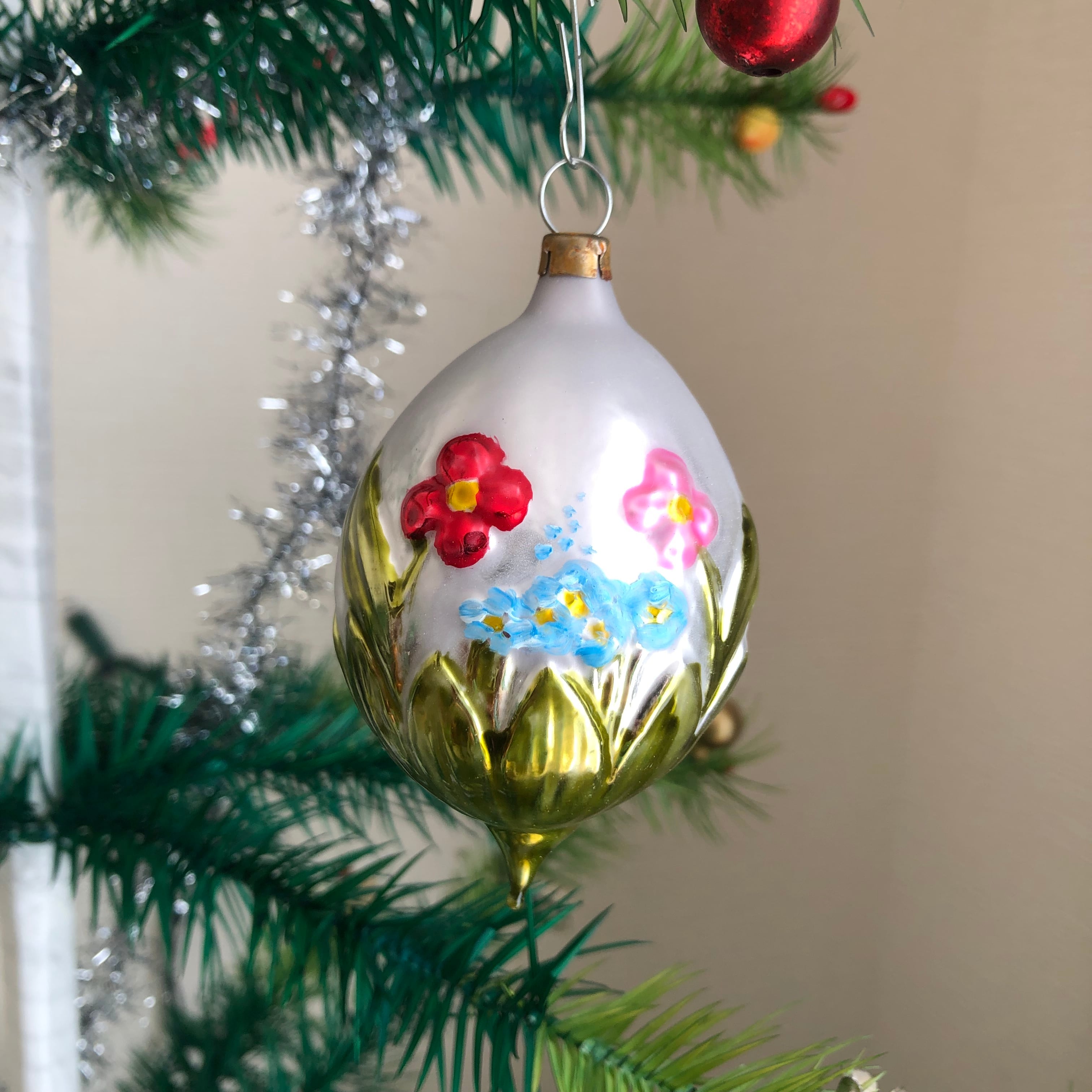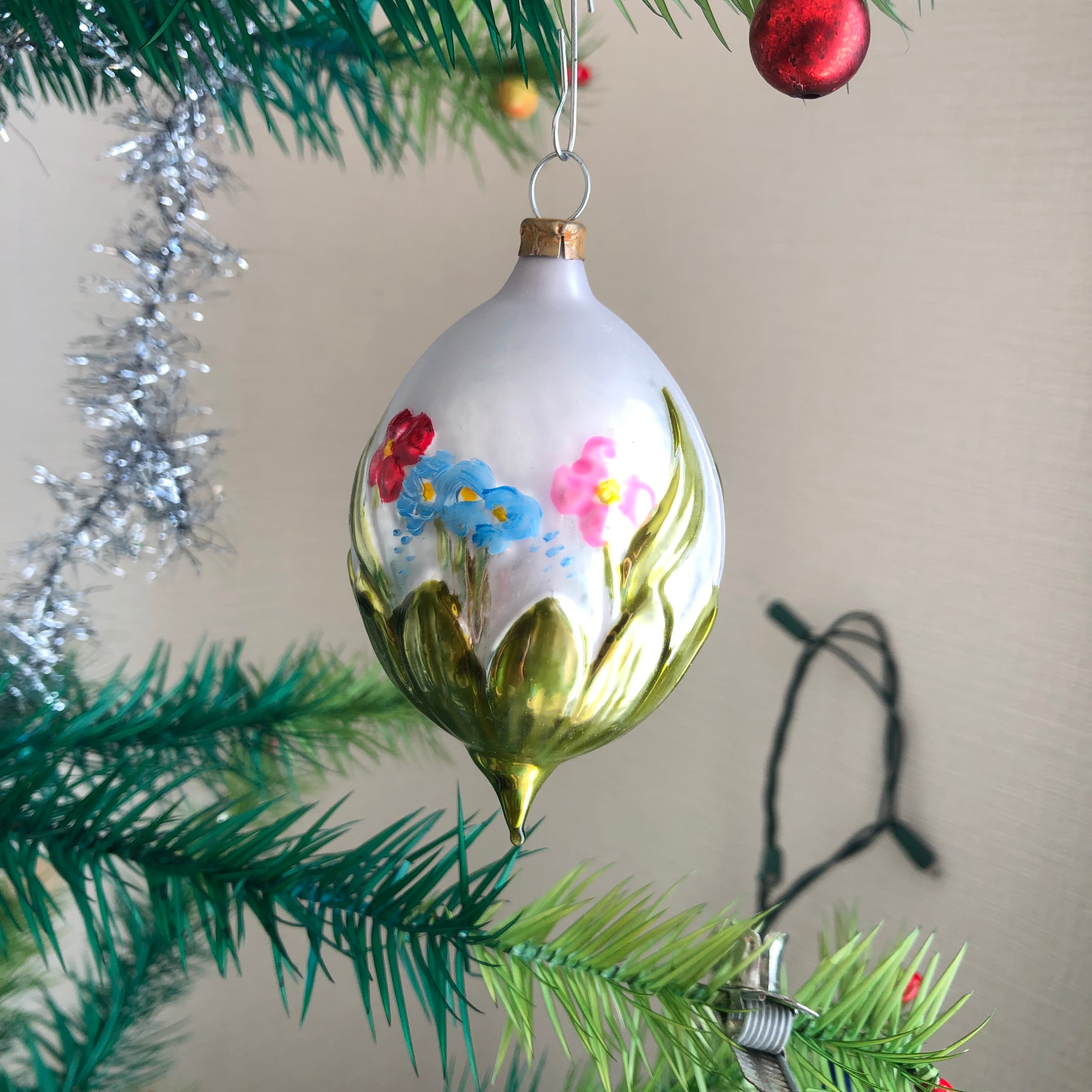 ドイツ製 お花畑のオーバル ガラスオーナメント クリスマスオーナメント