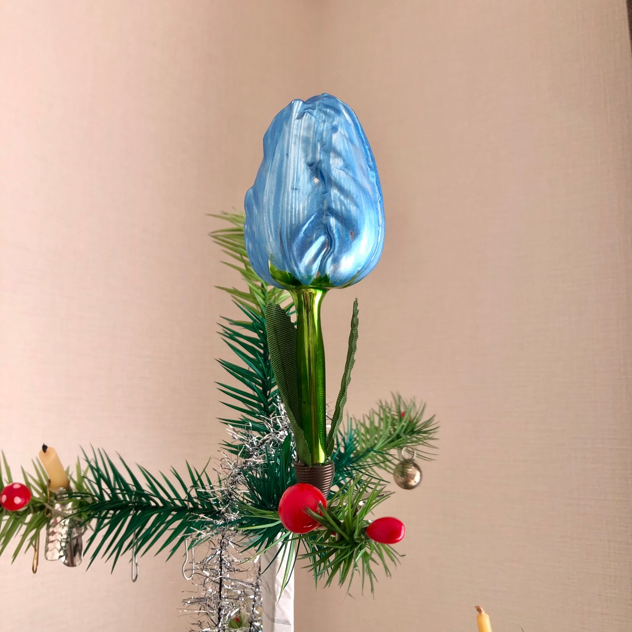 ドイツ製 チューリップ ブルー ガラスオーナメント クリスマスオーナメント