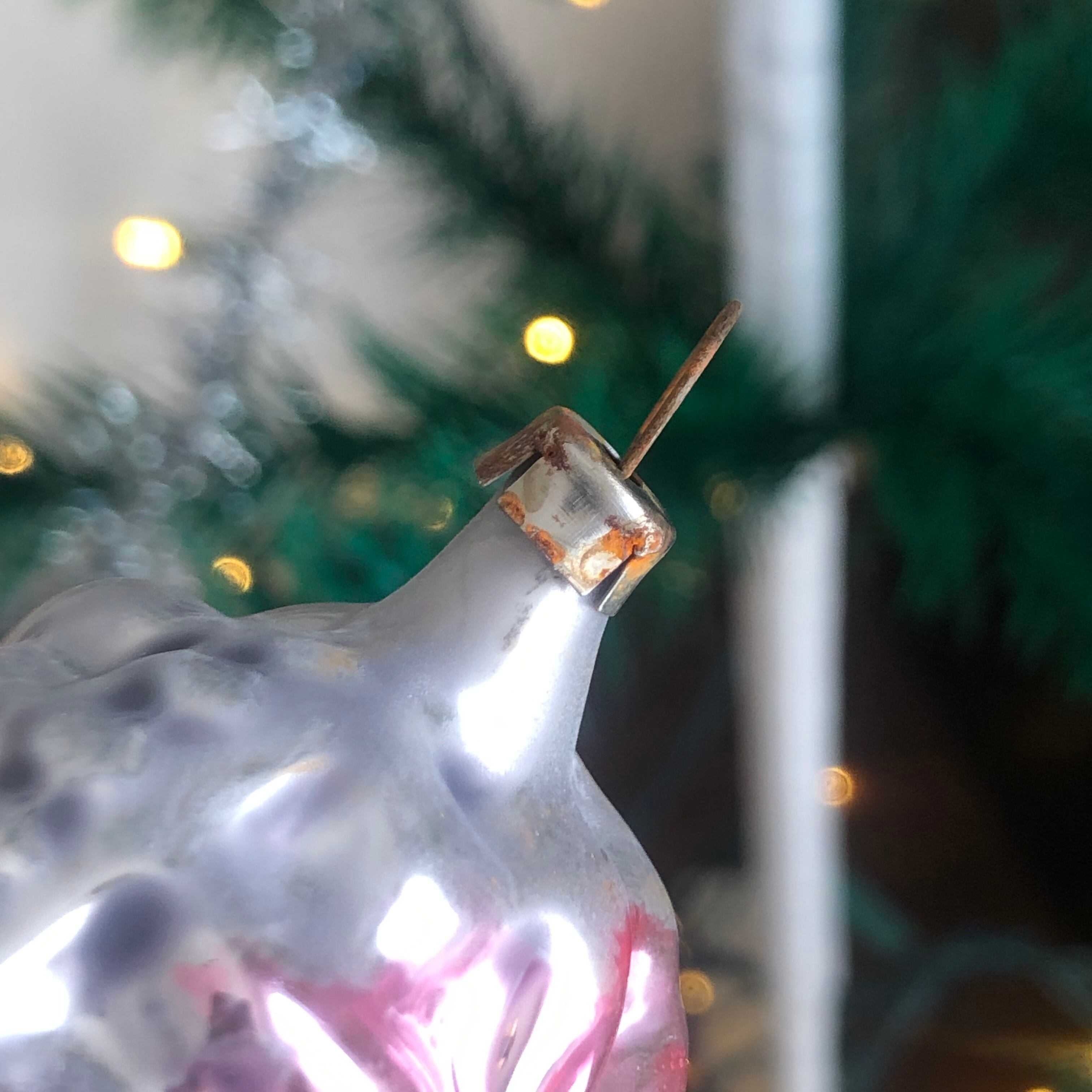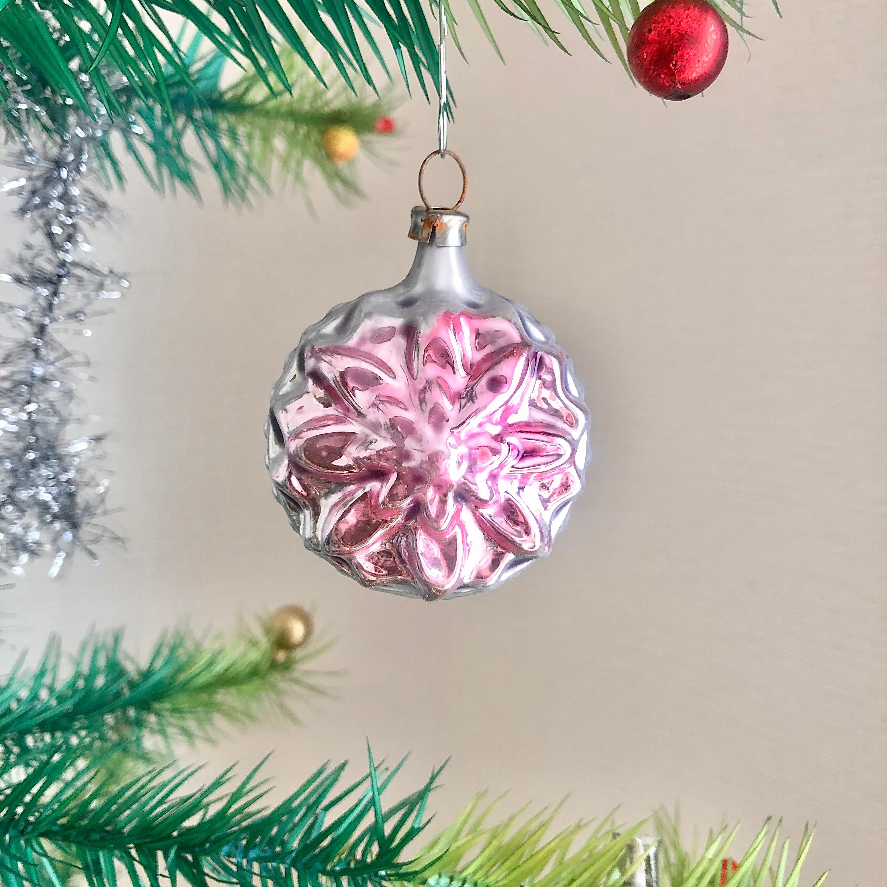 ドイツ製 両面ピンクフラワー ガラスオーナメント クリスマスオーナメント