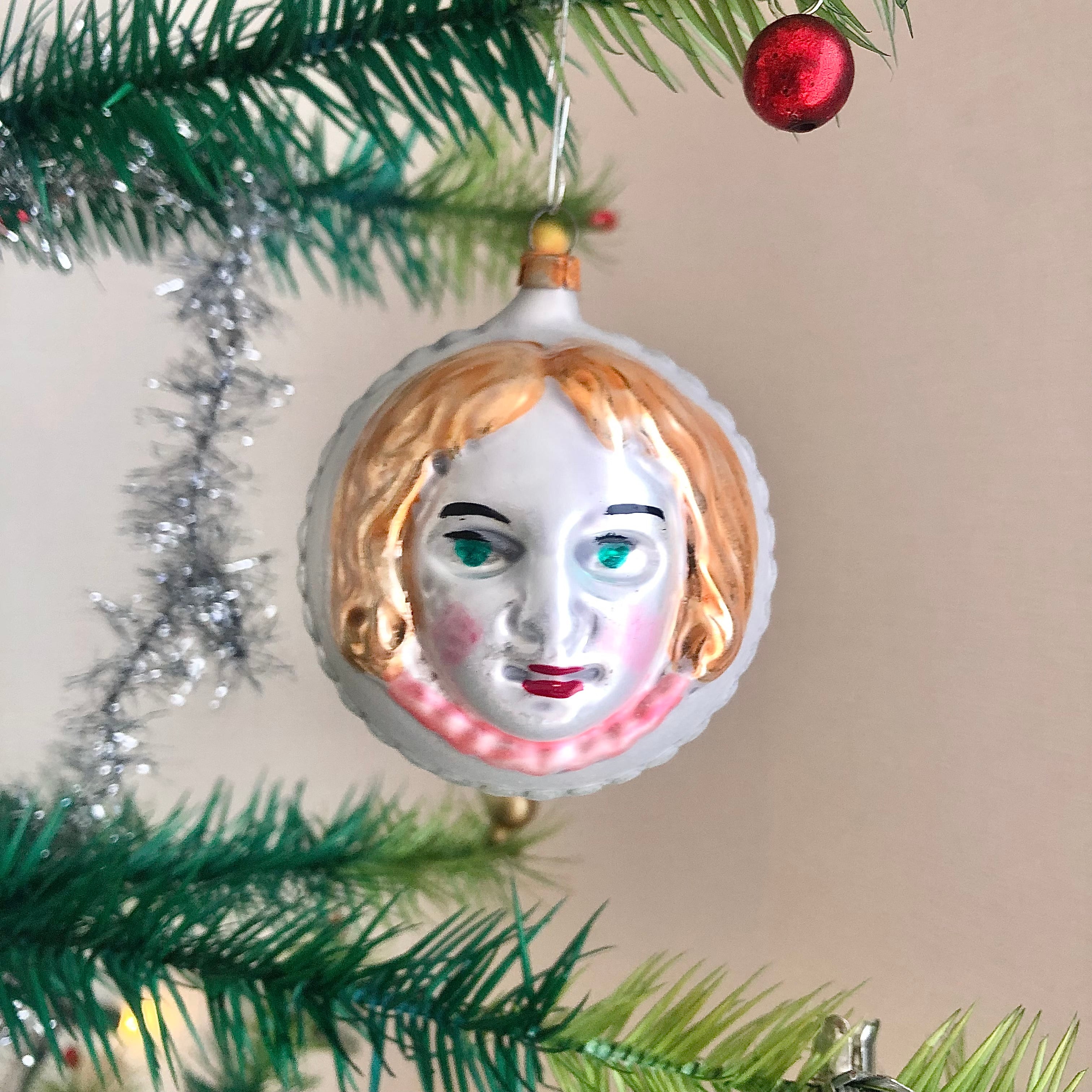 ドイツ製 両面エンジェルフェイス ガラスオーナメント クリスマスオーナメント