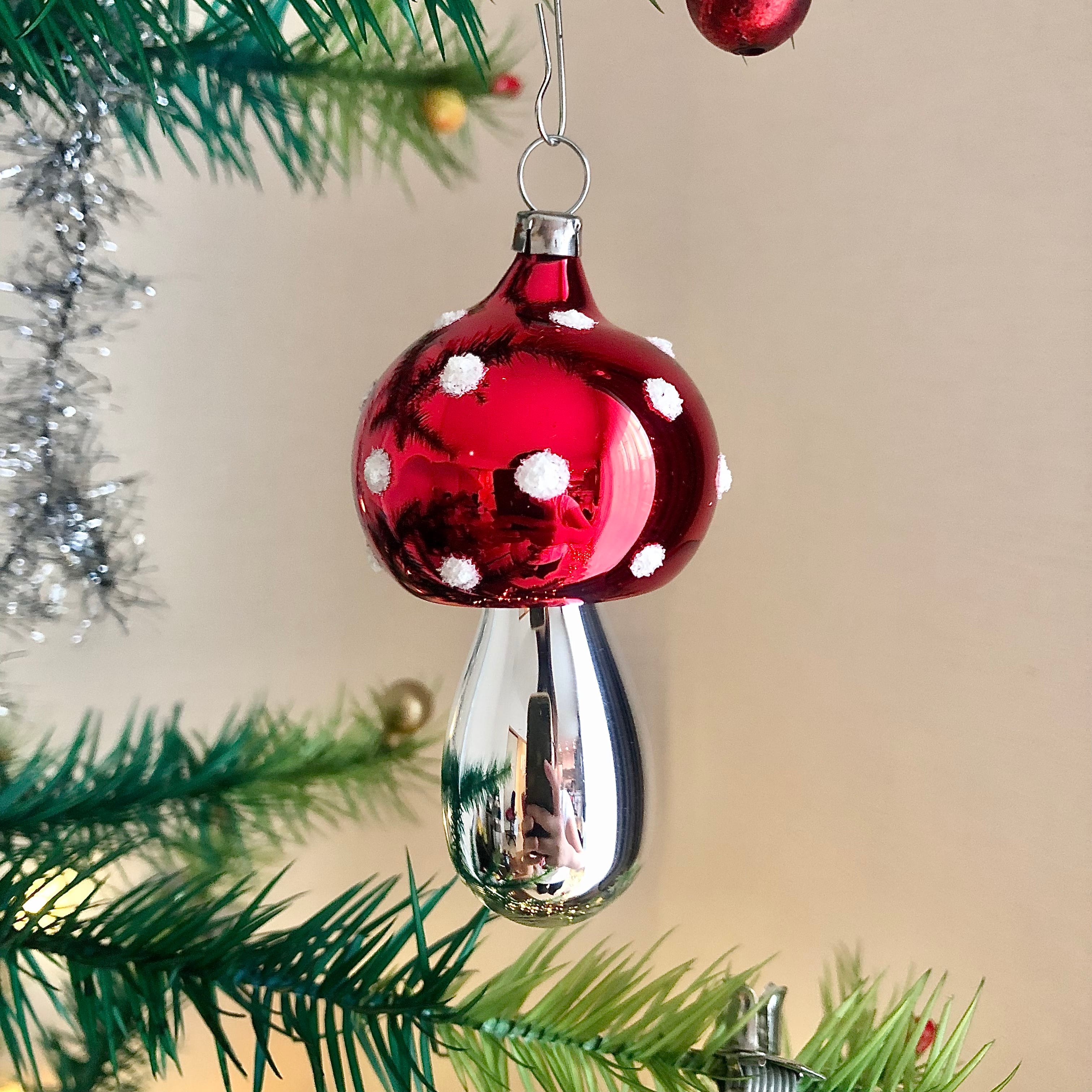 ドイツ製 フリーブローキノコ ガラスオーナメント クリスマスオーナメント