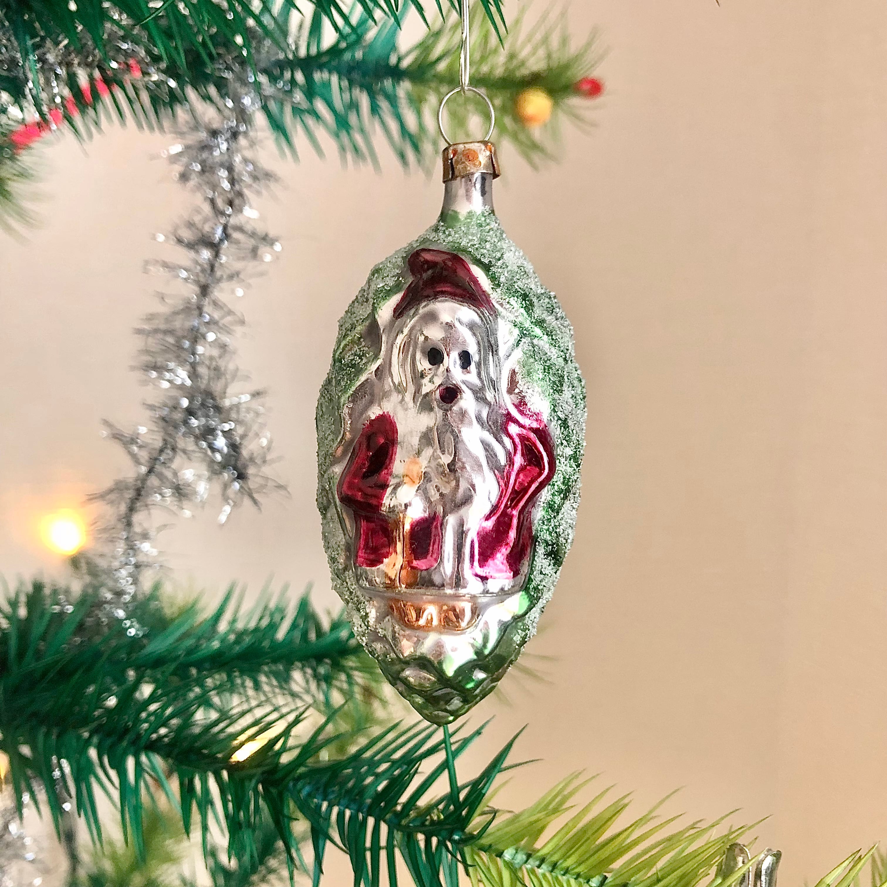ドイツ製 松ぼっくりサンタ ガラスオーナメント クリスマスオーナメント