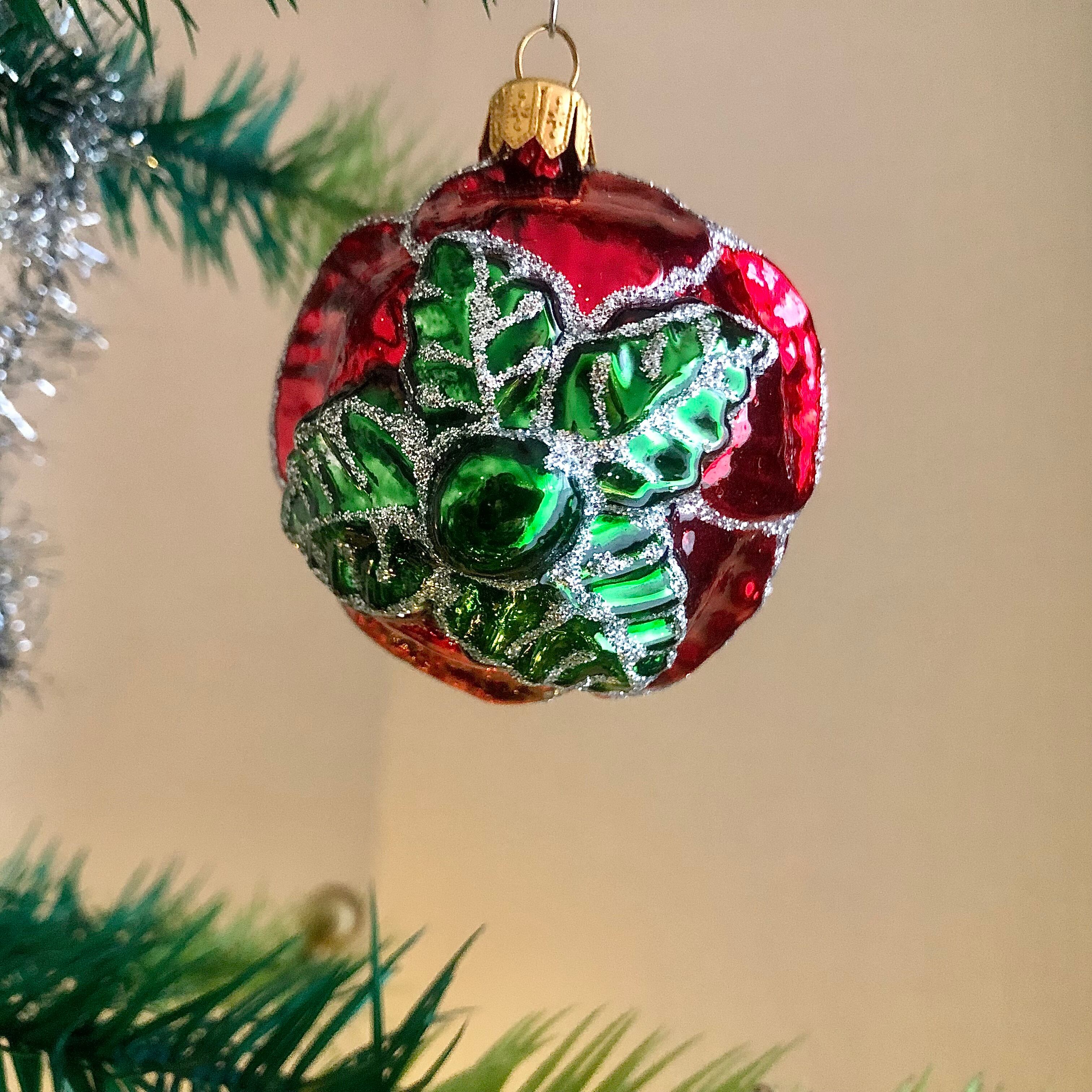 ドイツ製 お花にとまった蝶々 ガラスオーナメント クリスマスオーナメント