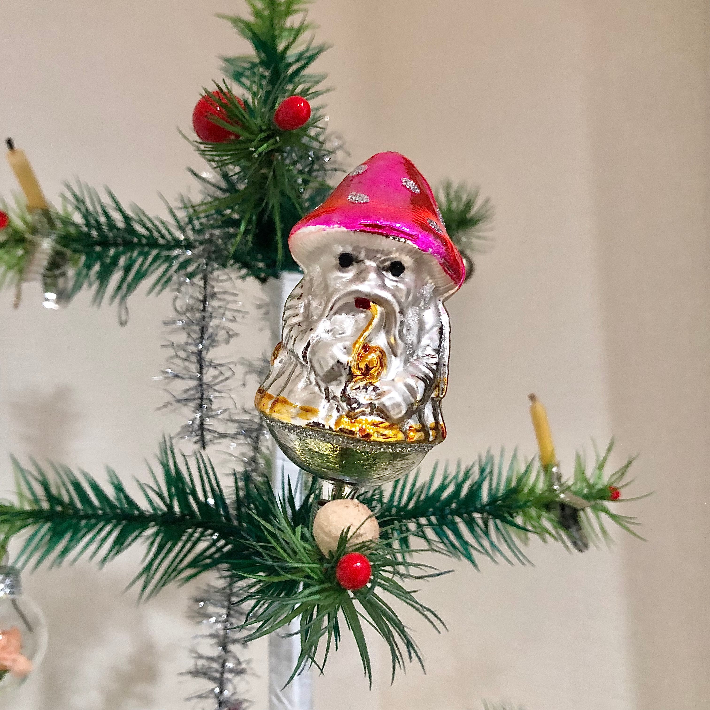 ドイツ製 キノコおじさんクリップ ガラスオーナメント クリスマスオーナメント