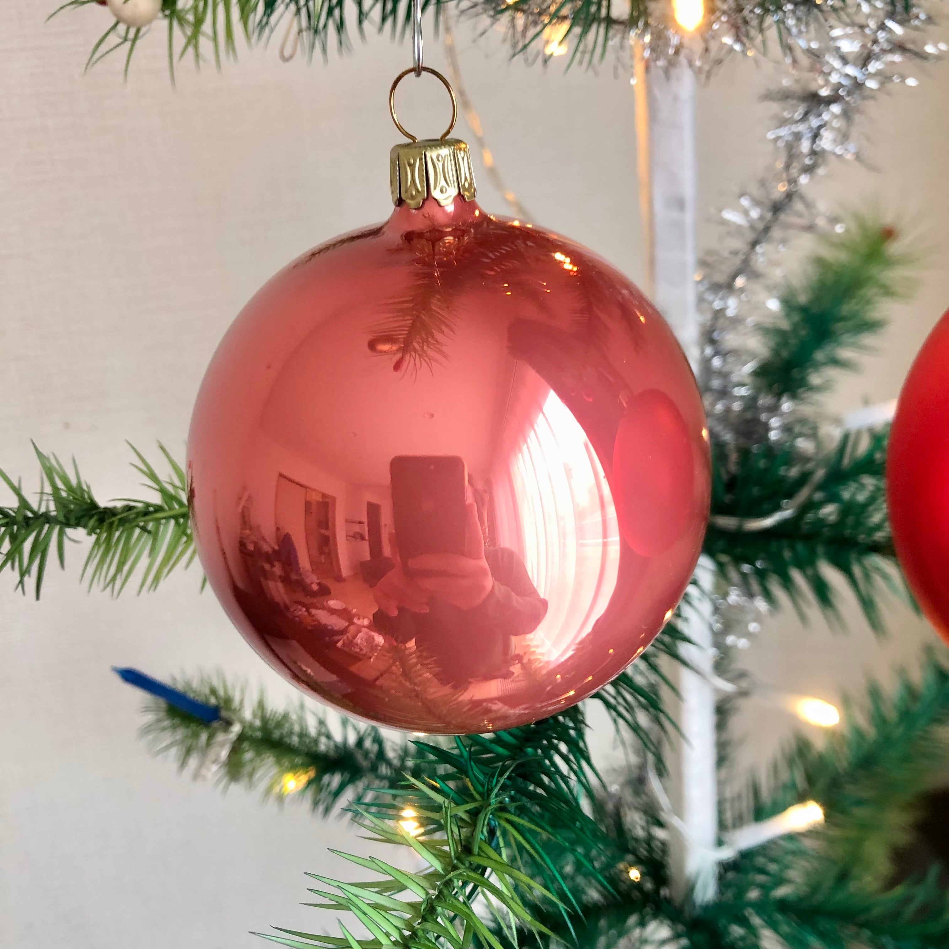 ドイツ製 8cmボール 2個セット ピンク ローズ ガラスオーナメント クリスマスオーナメント