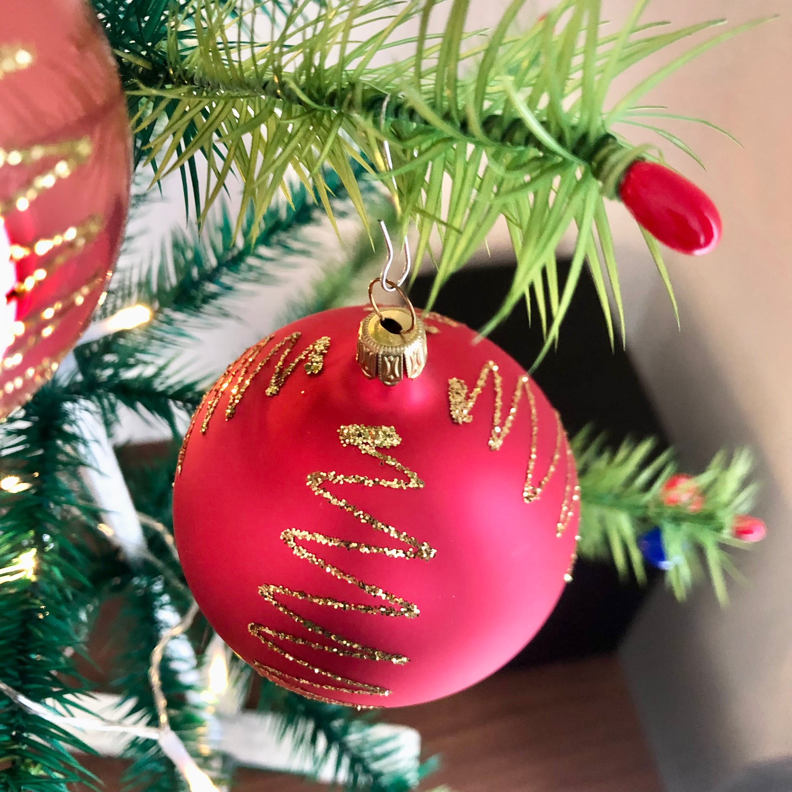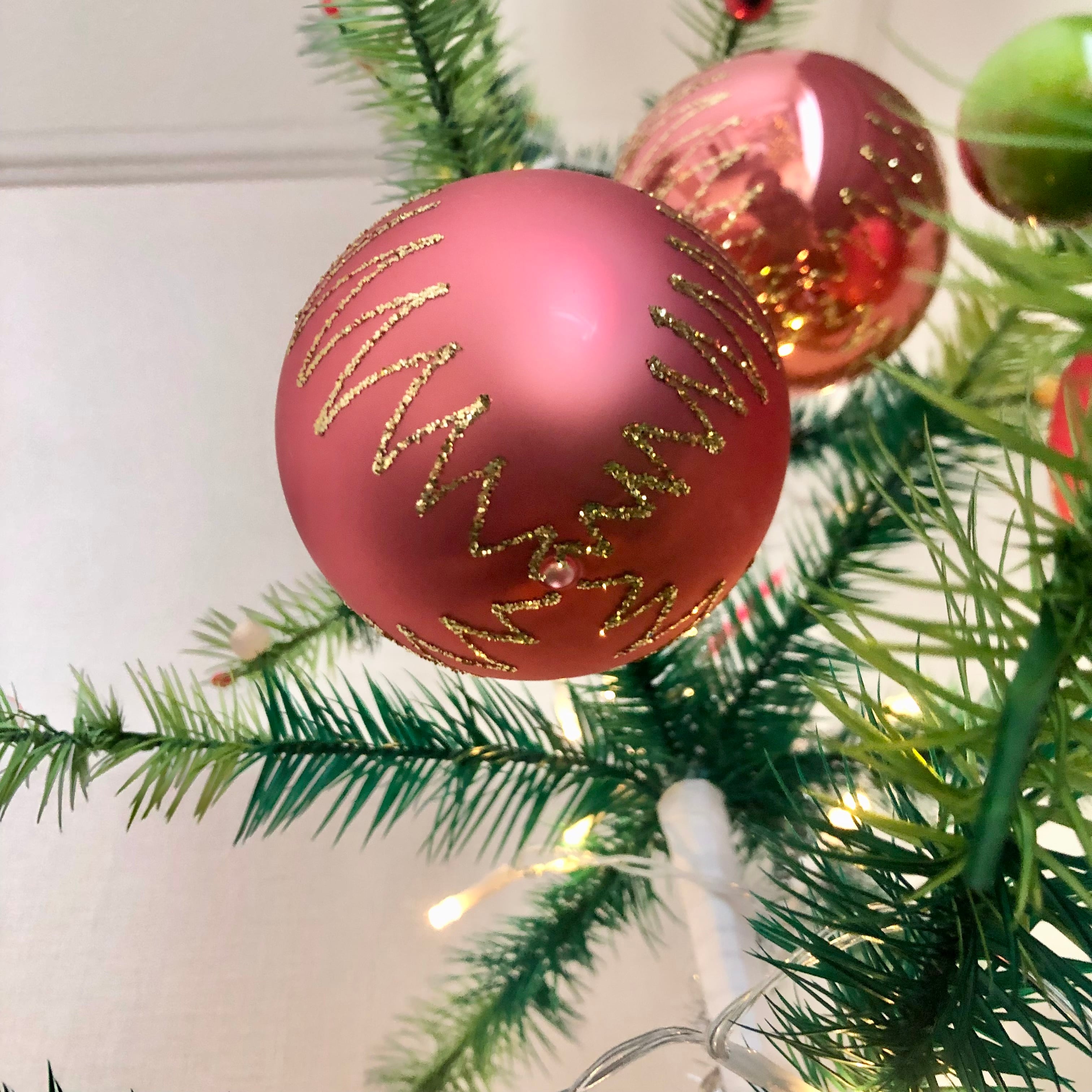 ドイツ製 8cmボール 3個セット ピンク ローズ ガラスオーナメント クリスマスオーナメント