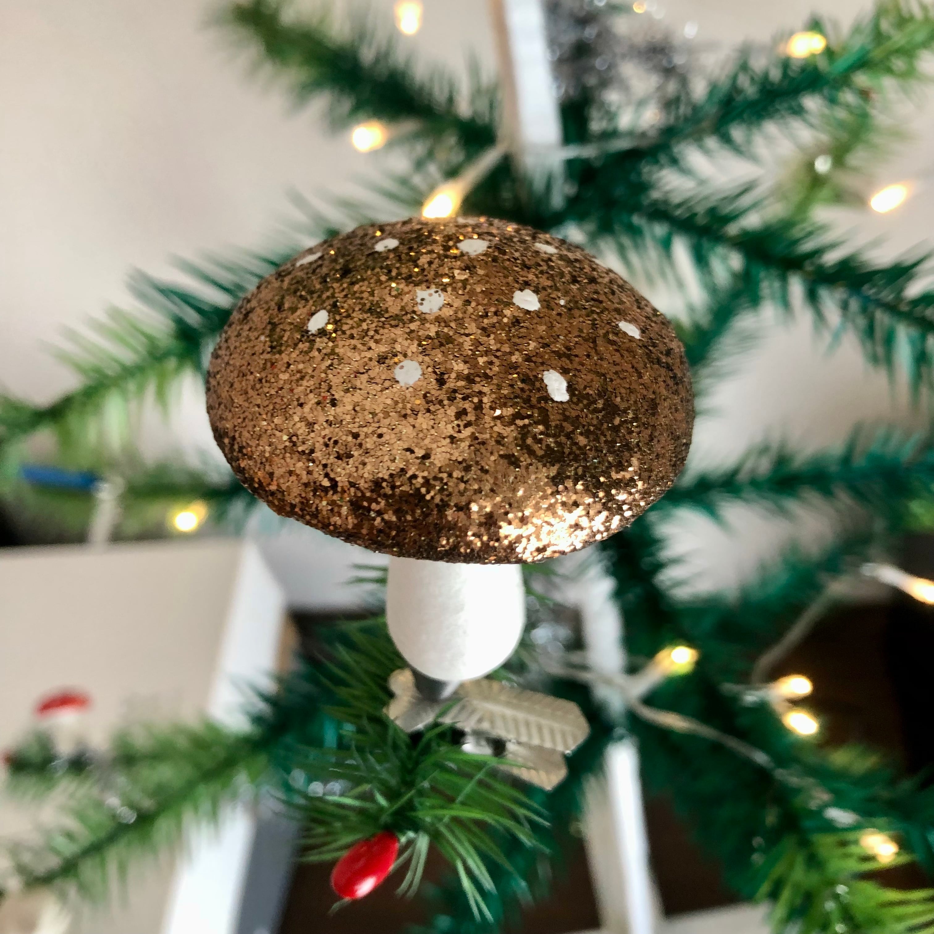 ドイツ製 コットングリッターキノコクリップ9 クリスマスオーナメント