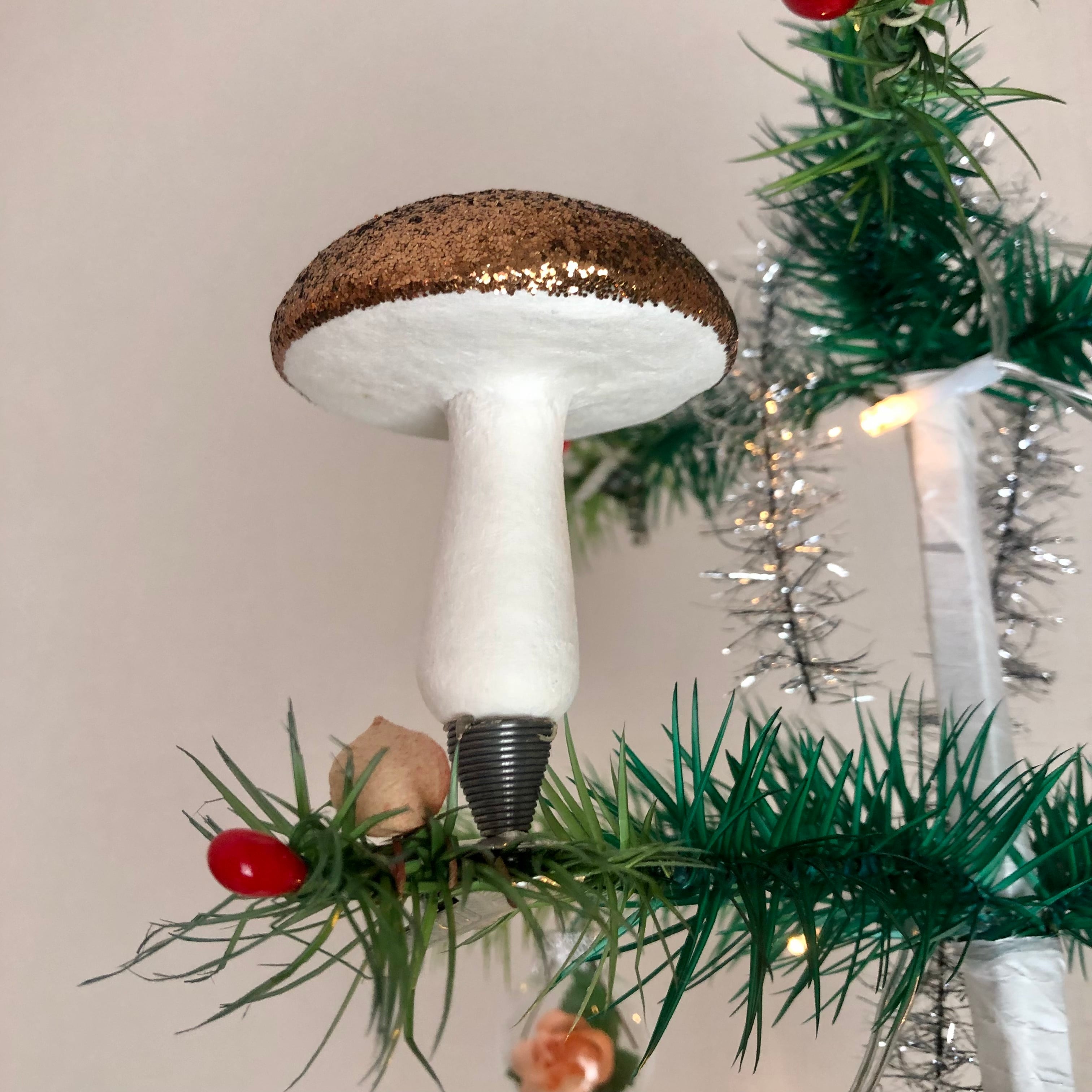 ドイツで古くから伝わる製法で作られたコットン製のレトロなキノコオーナメント。