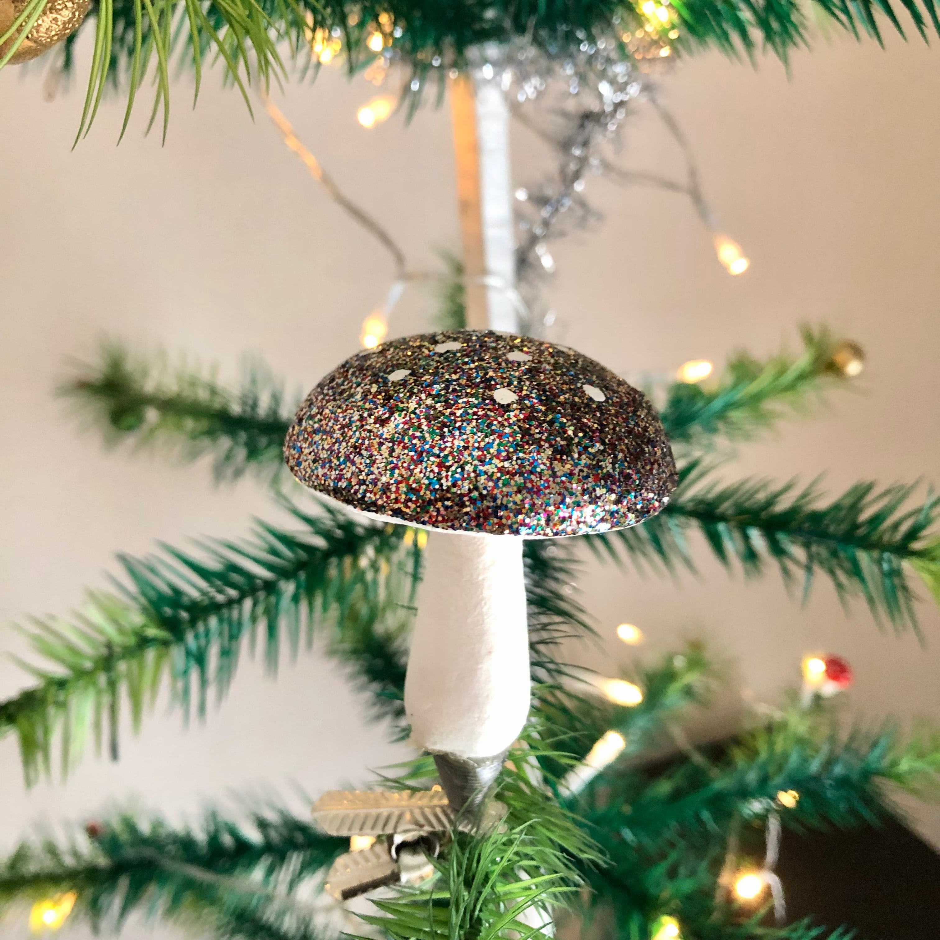 ドイツ製 コットングリッターキノコクリップ14 クリスマスオーナメント