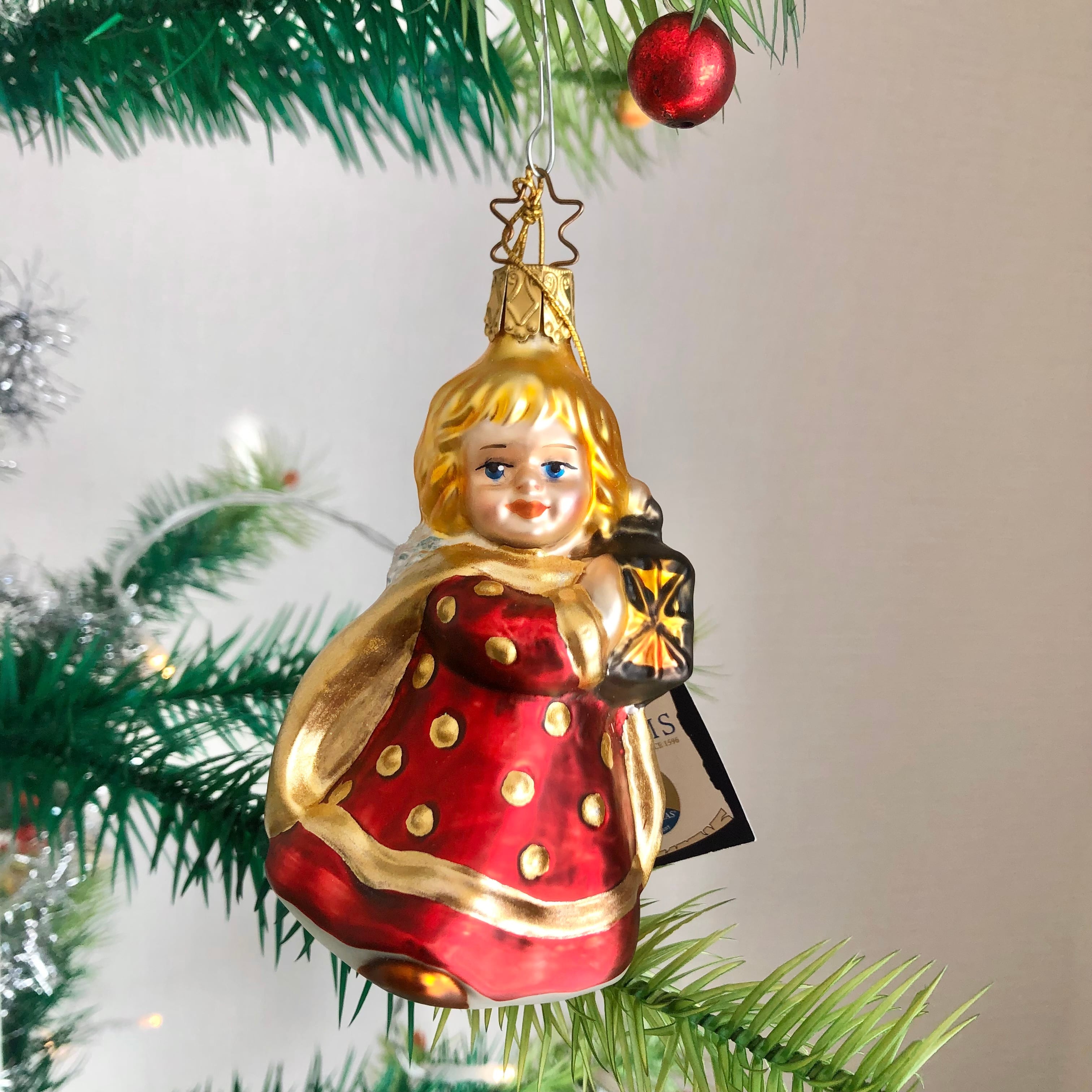 INGE-GLAS ドイツ製 ランタンを持った天使の少女 ガラスオーナメント クリスマスオーナメント