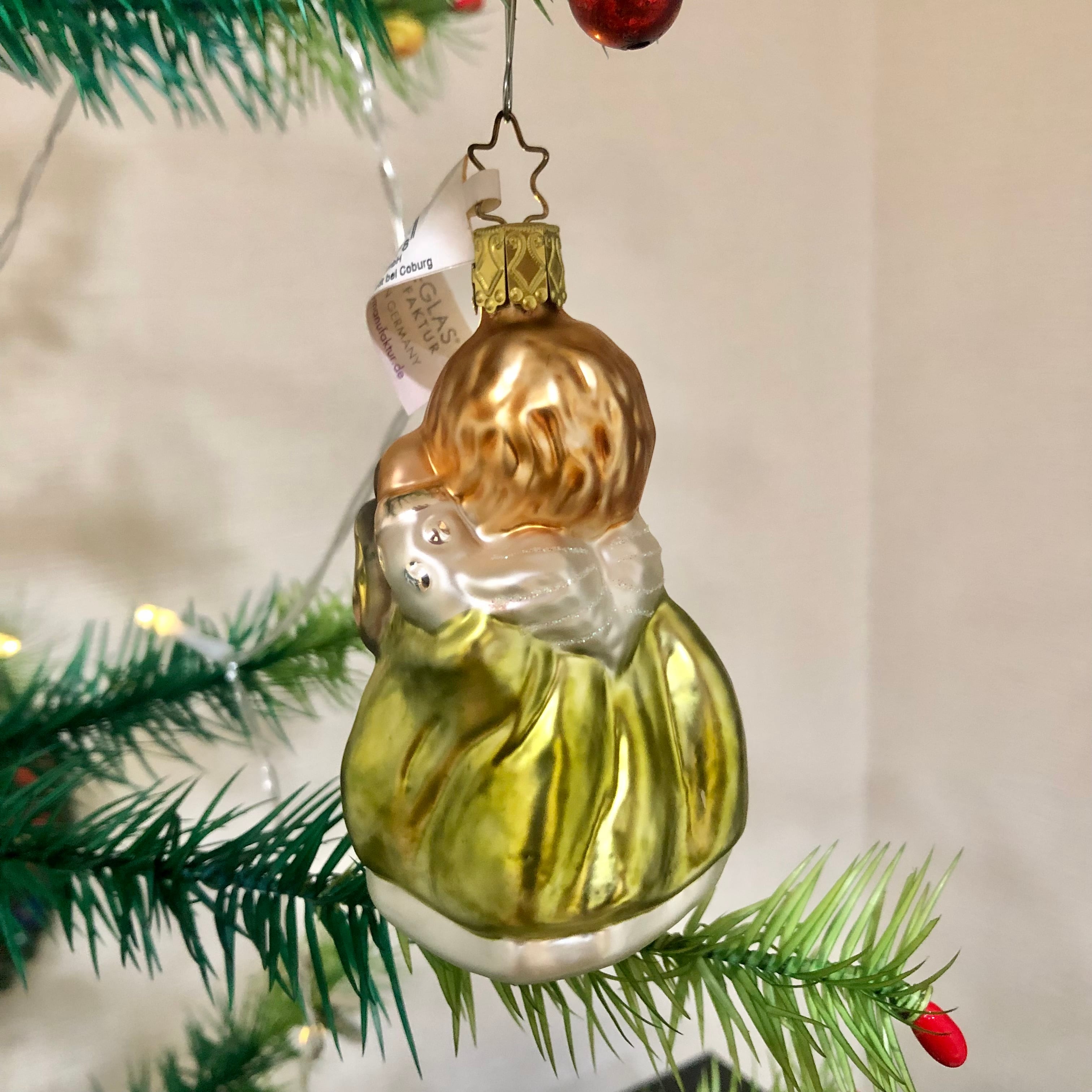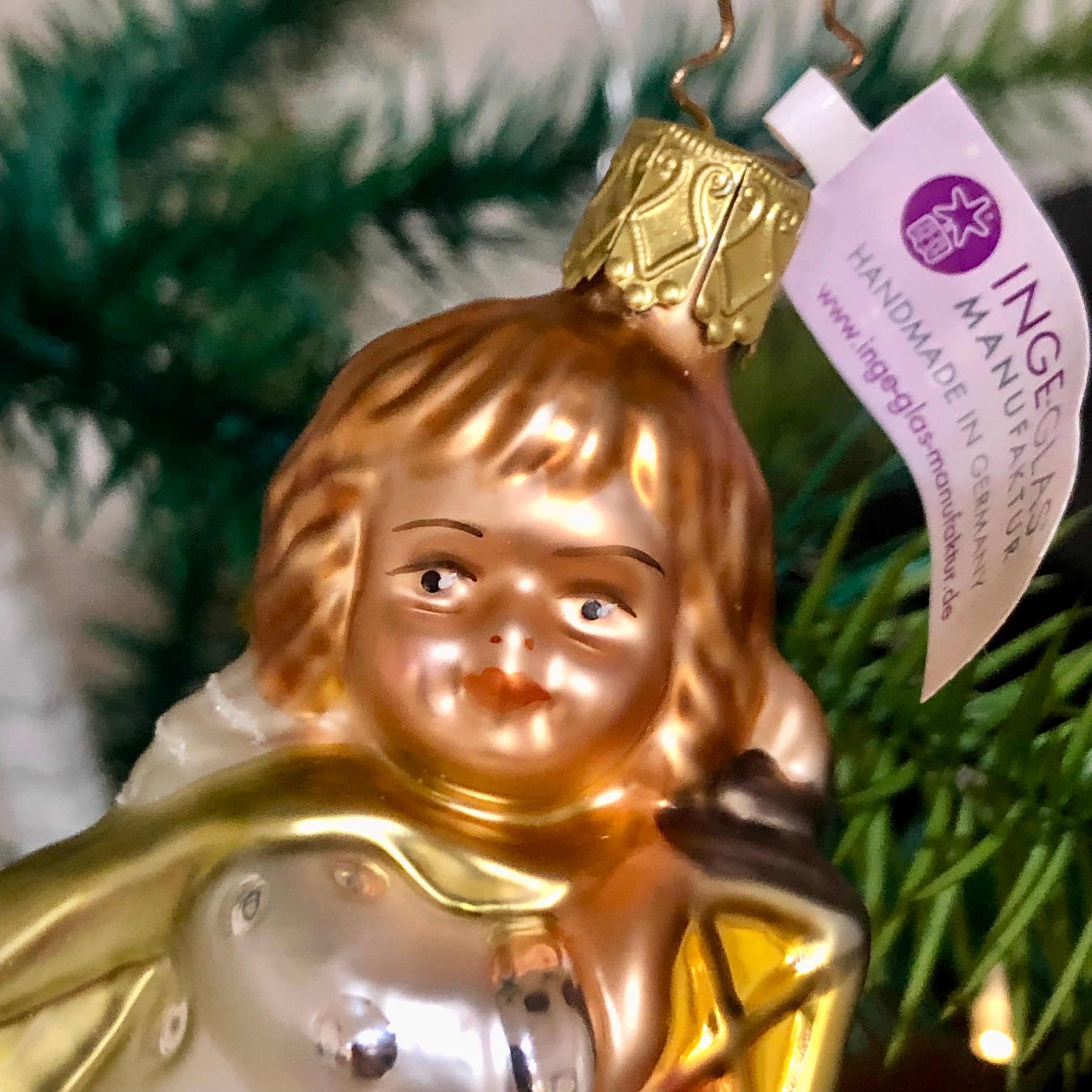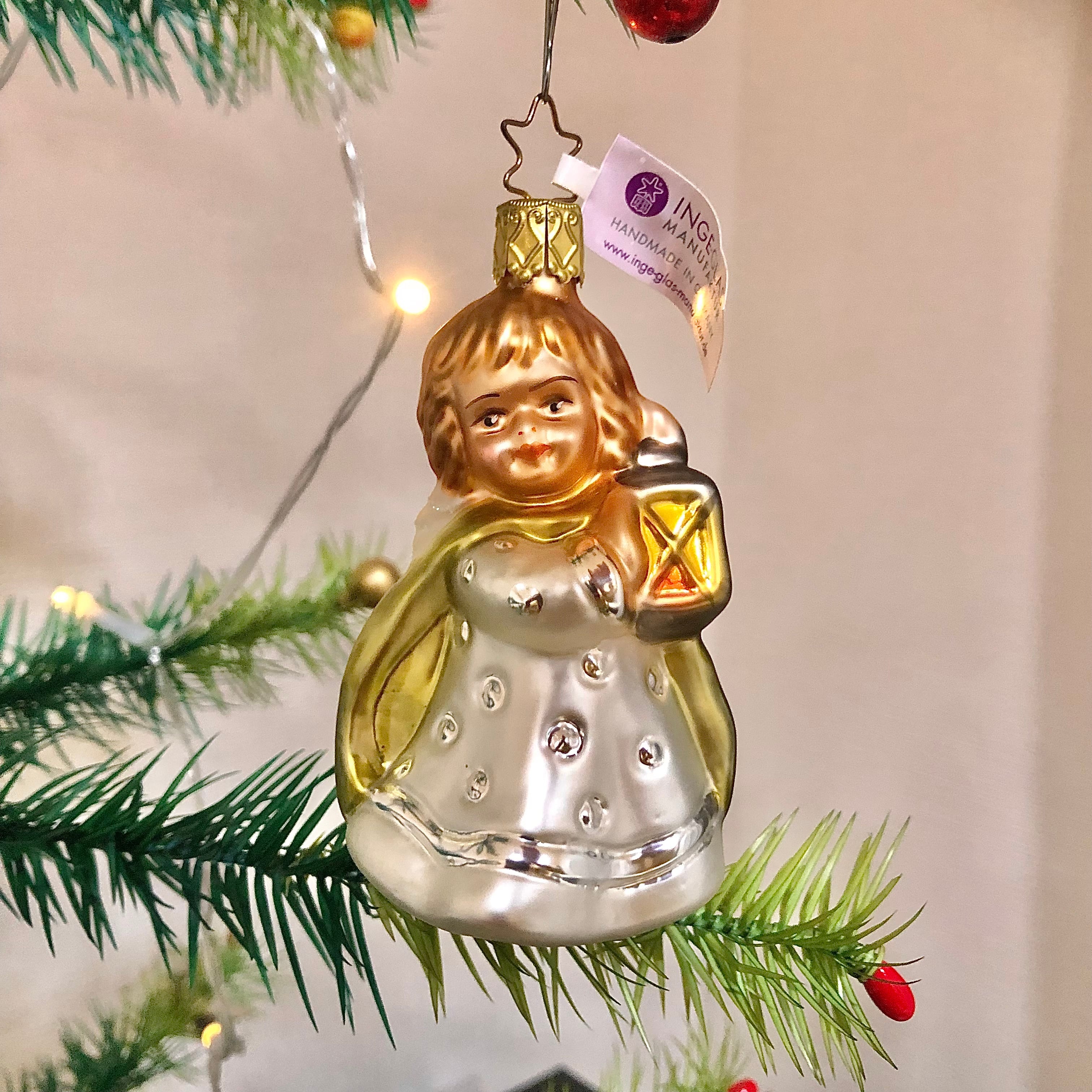 INGE-GLAS ドイツ製 ランタンを持った天使の少女-ホワイト ガラスオーナメント クリスマスオーナメント
