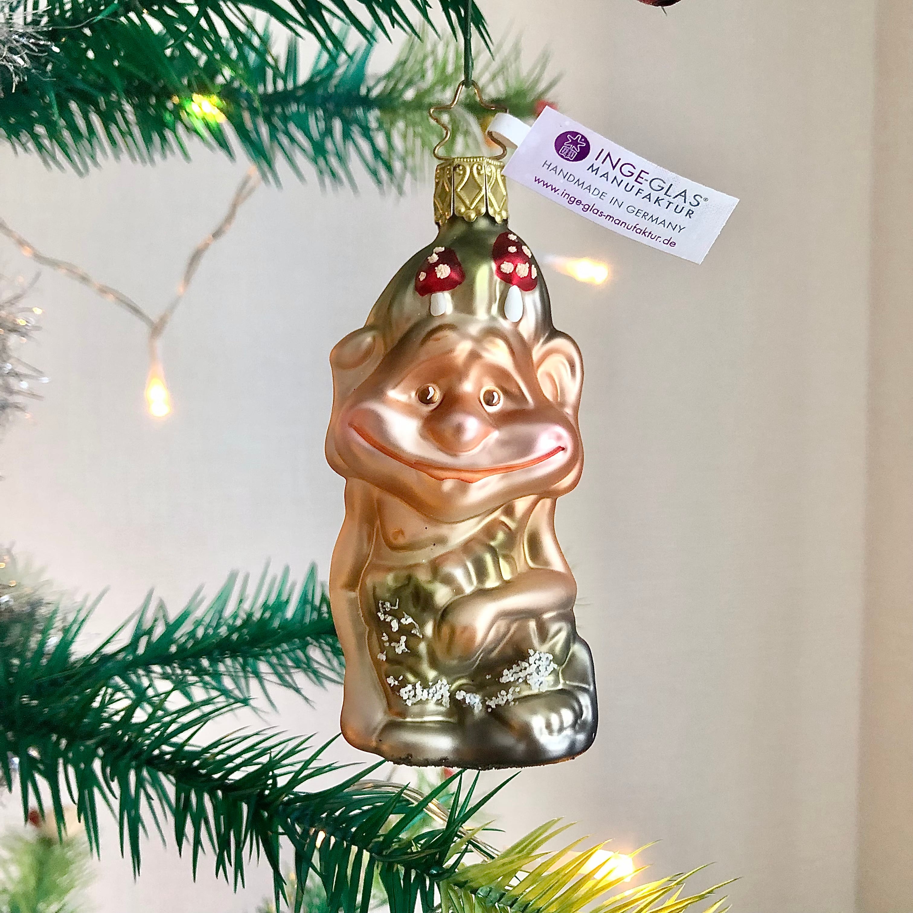 INGE-GLAS ドイツ製 キノコツノのノーム 蓄光 発光 ガラスオーナメント クリスマスオーナメント アスティエ